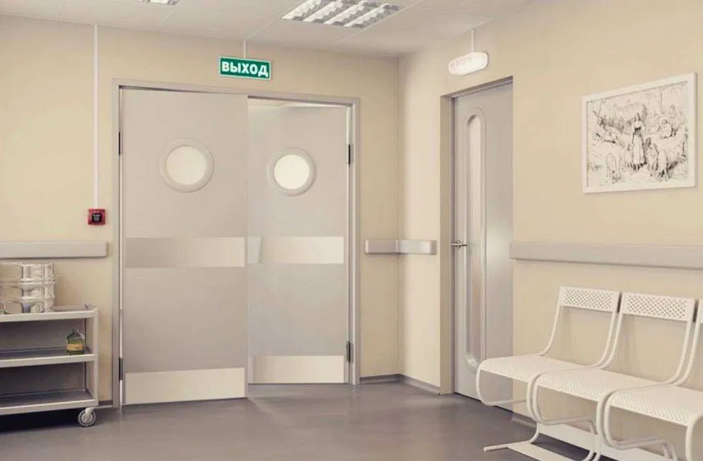 - Металлические двери, зачастую из нержавеющей стали — характеризуются высокой сопротивляемостью к коррозии и долговечностью, применяются в операционных и стерилизационных зонах.